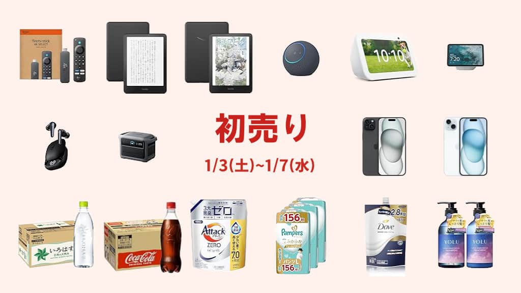毎年、1月の初旬におこなわれる年始のセールで、Amazonデバイスや家電製品、日用品、ファッションなどがお得に買い物できます。